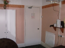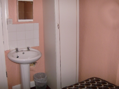 ROOM 1 First Floor -Small standard double bedroom, (next to communal showers and toilets) with T.V. and Freeview, wash hand basin, tea and coffee making facilities.