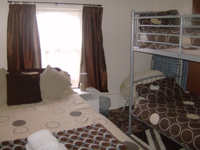 ROOM 8 Second floor. - Ensuite family room with double bed, bunk beds, T.V. with Freeview, wash hand basin and tea and coffee making facilities.